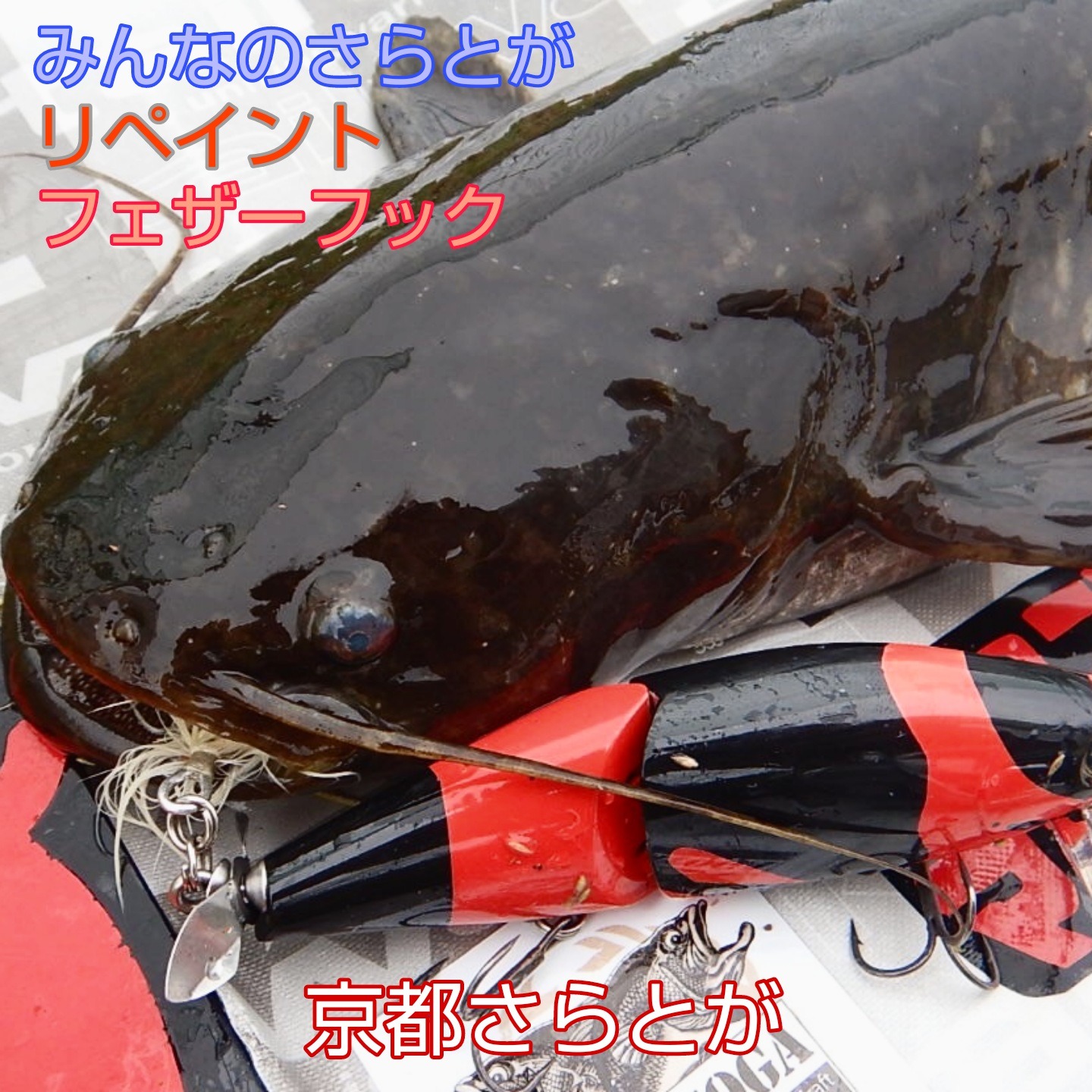 ナマズの方は、イナリワンにチェイスがあったにもかかわらずバイトに至る事がなかった魚体。フェザーフック付きのリペイントルアーで一発だったそうです。明らかにフェザーフックの効果を感じますo(゚∀゚)o